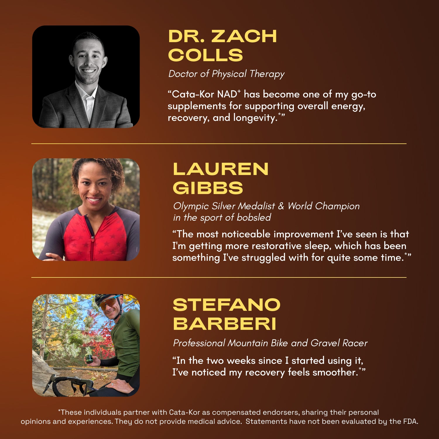 "Cata-Kor NAD⁺ has become one of my go-to supplements for supporting overall energy, recovery, and longevity."