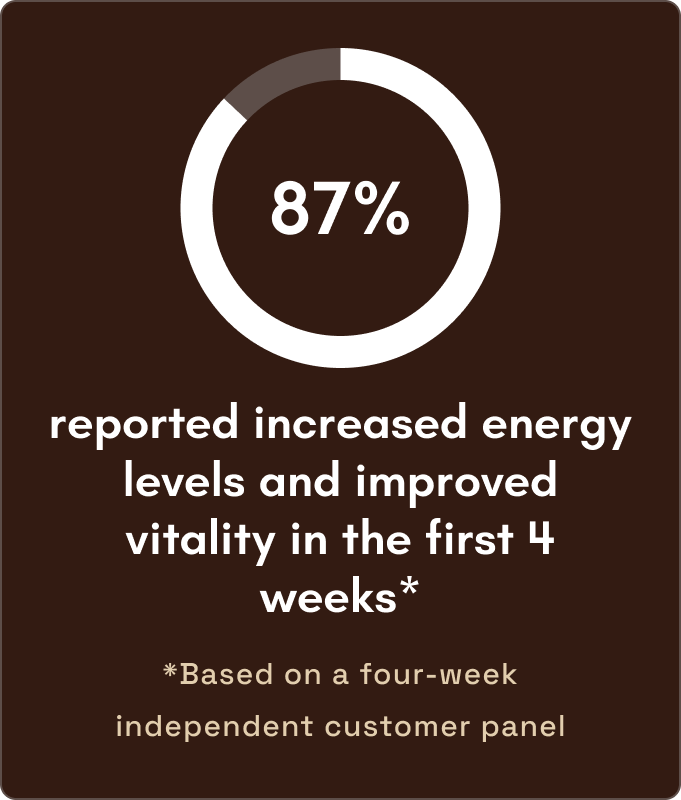 Most users feel more energized and mentally clear within the first week. Noticeable changes in physical stamina, recovery, and sustained vitality typically appear after 2–4 weeks of consistent use. Full cellular restoration occurs over 8–12 weeks as NAD+ levels normalize.