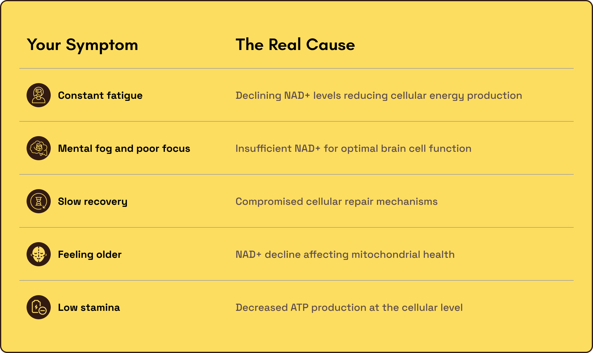 When you're young, NAD+ levels are high and your cells thrive.