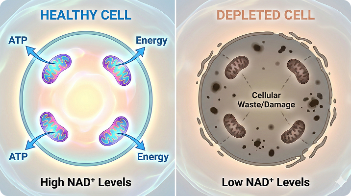 Your cells have a master energy regulator—NAD+ (Nicotinamide Adenine Dinucleotide)—a critical coenzyme that powers over 500 enzymatic reactions in your body.